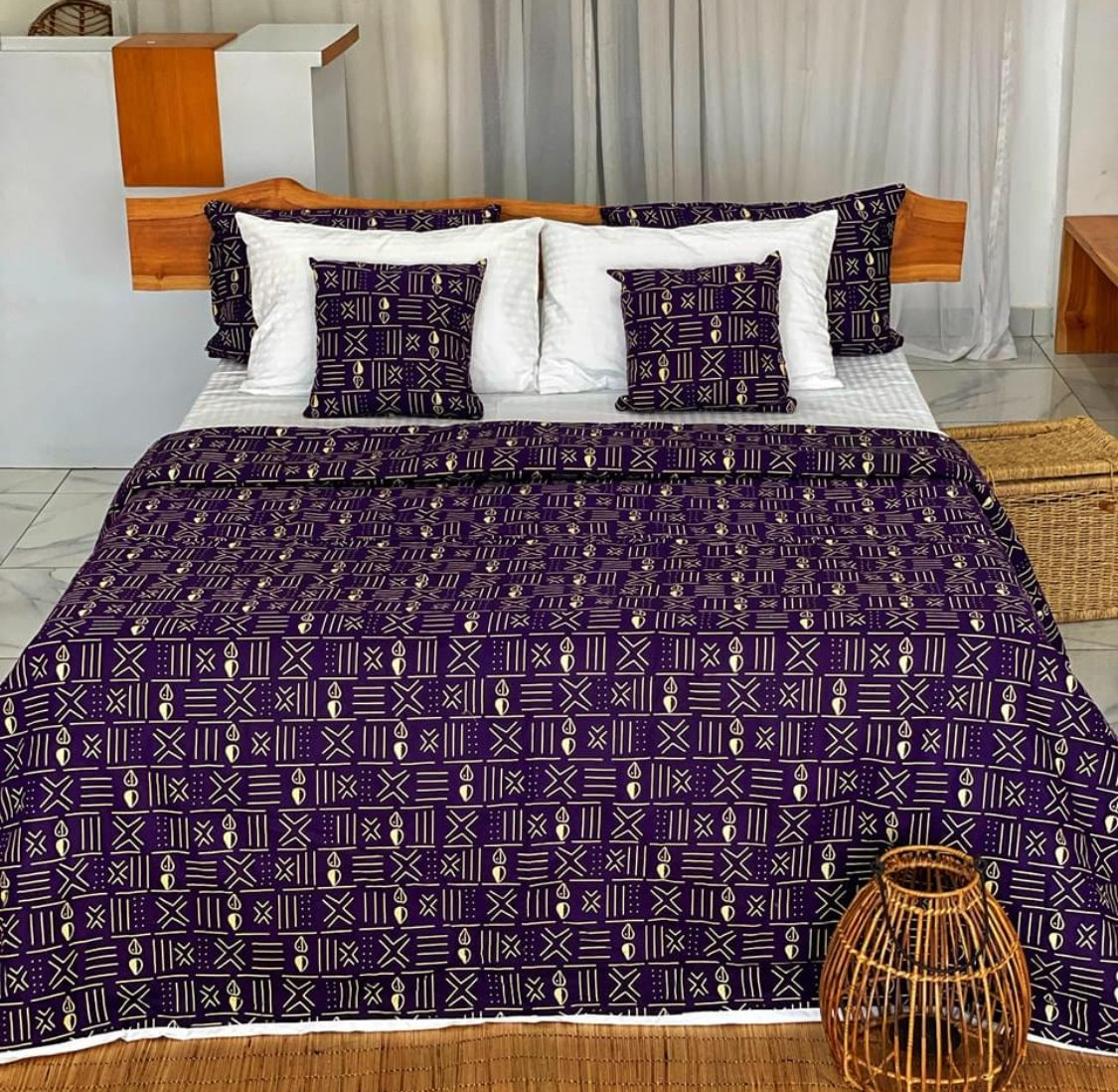 Découvrez nos parures de lits en coton givré, arborant des motifs africains uniques pour une touche de culture et de style.