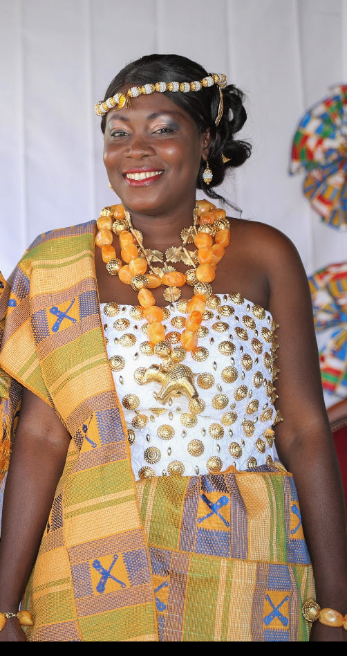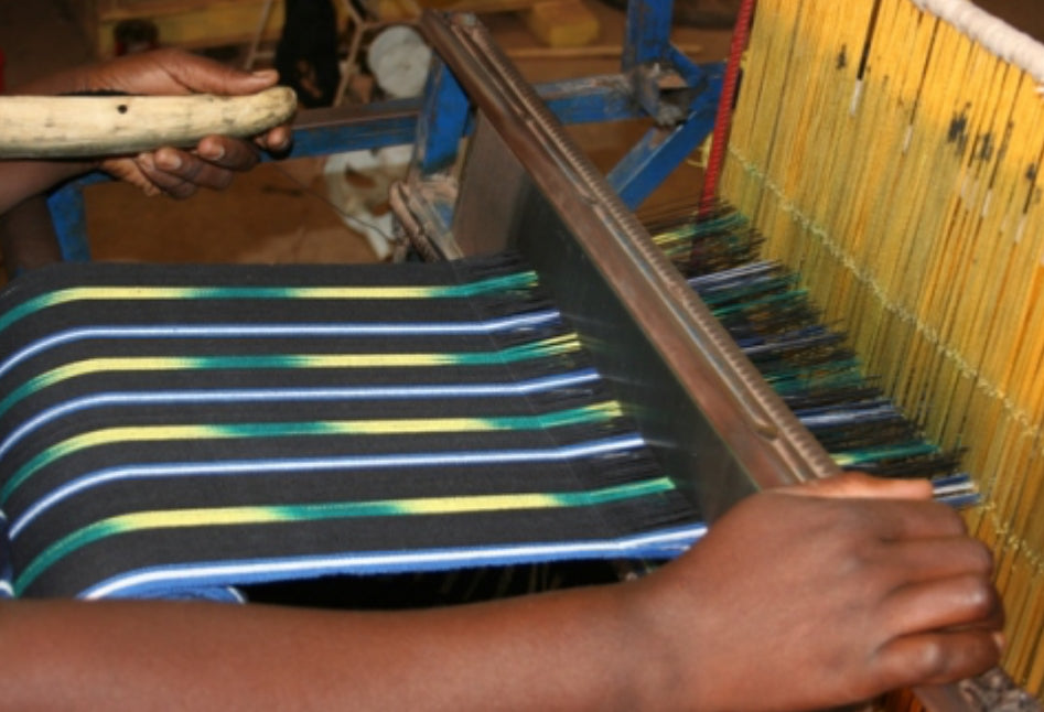 Le pagne baoulé est un textile artisanal traditionnel de la Côte d'Ivoire, tissé à la main par les artisans de l'ethnie baoulé. Voici quelques points clés sur son histoire et sa fabrication :Le tissage du pagne baoulé est une tradition ancestrale héritée du royaume ashanti au Ghana. Avant l'introduction du tissage, les vêtements baoulé étaient faits d'écorce battue, une technique encore pratiquée dans certains villages.Le pagne baoulé est tissé en bandes étroites qui sont ensuite assemblées pour former un rectangle. Les motifs sont généralement dans des teintes bleu indigo, surlignées de bandes colorées. La fabrication du pagne suit un procédé traditionnel complexe, transmis de génération en génération.