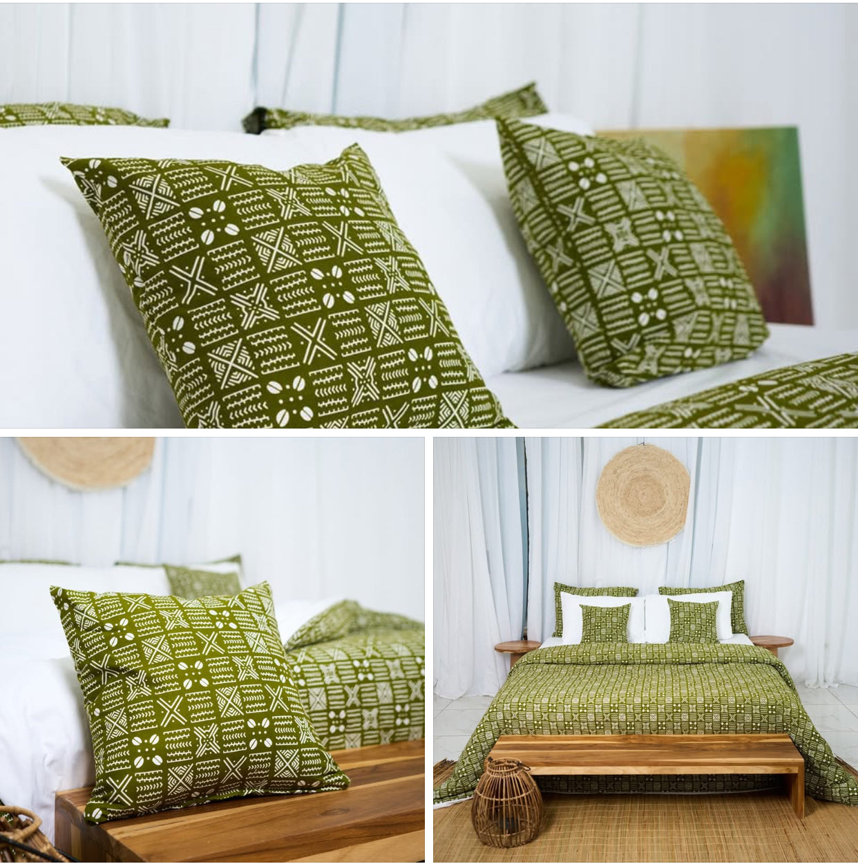 Découvrez nos parures de lits en coton givré, arborant des motifs africains uniques pour une touche de culture et de style.
