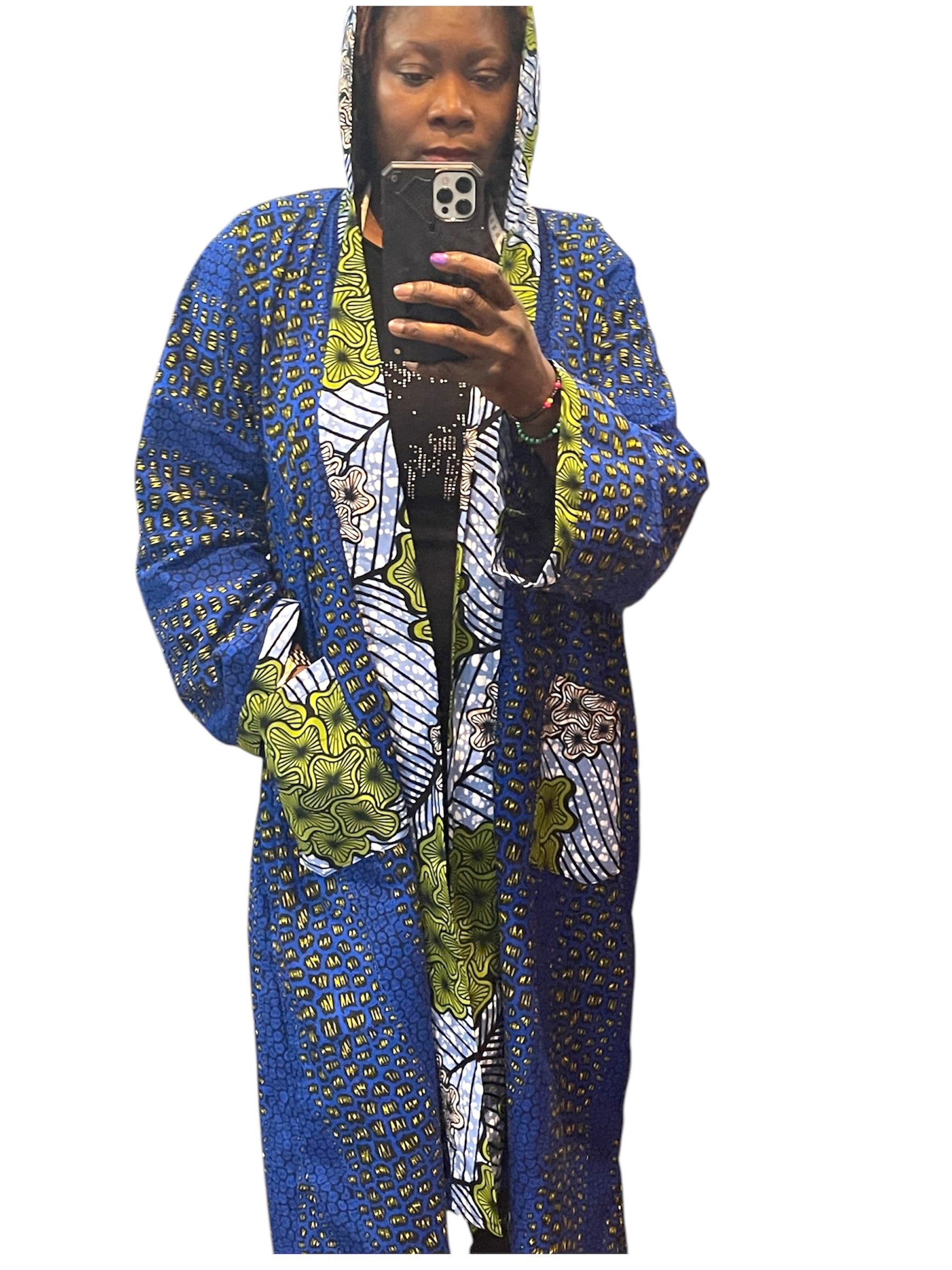 Cardigans longs en wax pour femmes, combinaison à capuche